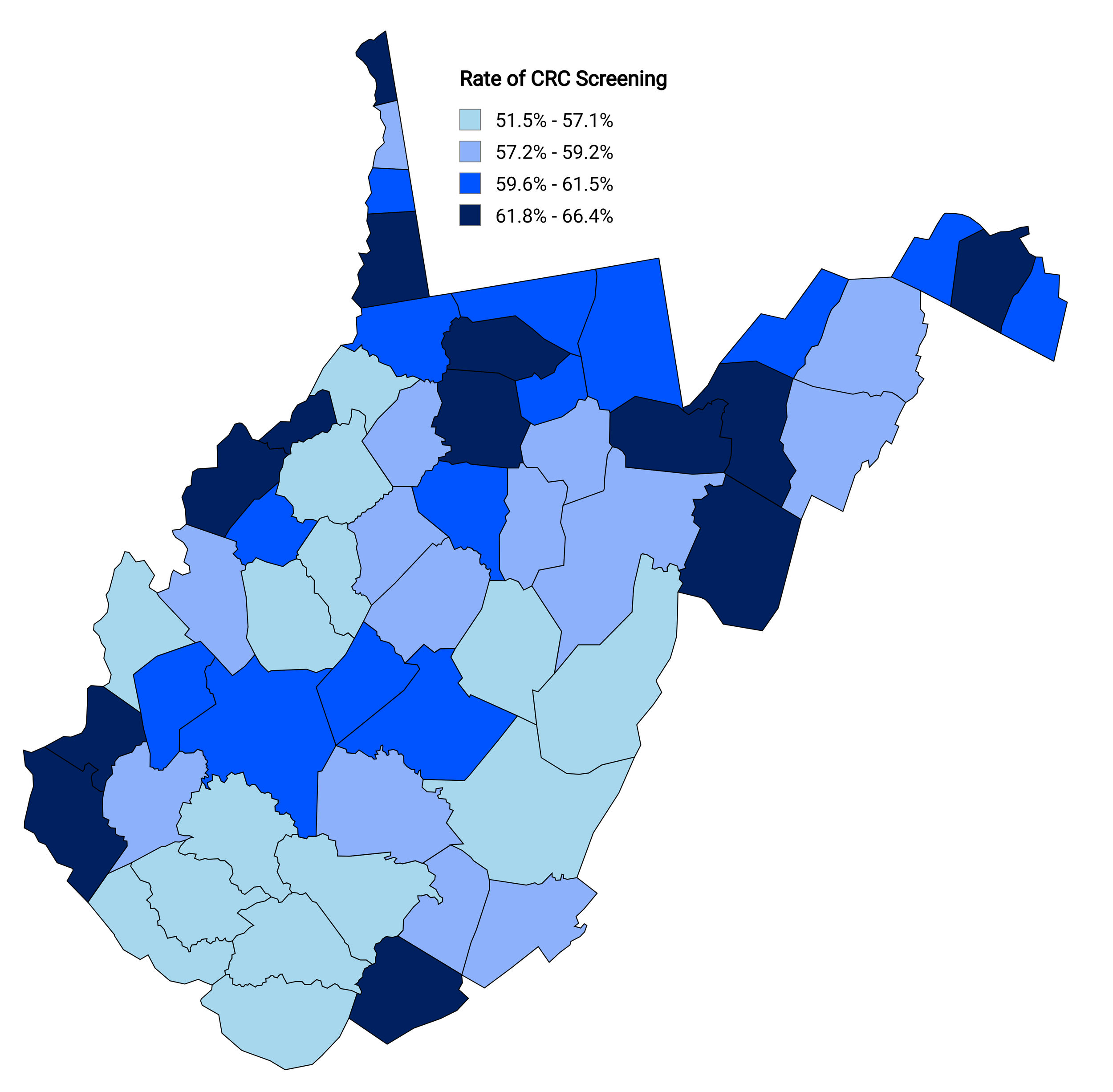 About 60% of eligible West Virginians receive recommended CRC screenings.