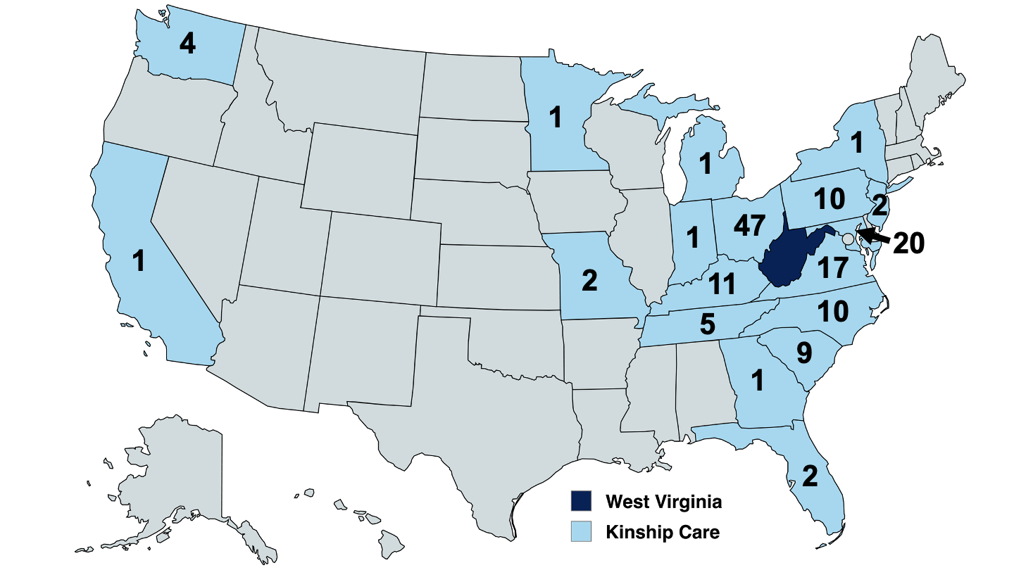 West Virginia prioritizes placing children with other family members or close family friends, but children may be sent elsewhere for special circumstances like needing medical treatment.