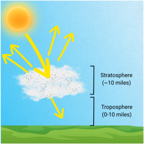 SAI is modeled after natural effects observed after large volcanic eruptions. Aerosolized particles are added to clouds in the stratosphere, making them more reflective and reducing the amount of solar radiation entering the atmosphere. Sulfur dioxide (SO2) is the most commonly studied molecule for use in SAI, but other molecules may be effective as well. These particles often remain in the upper atmosphere for several years, exerting their cooling effect. SAI is considered to be a relatively cheap method of geoengineering relative to other proposed climate interventions or the cost of not addressing an increasingly warm planet, however, the cost to fully implement a SAI remains extremely high.