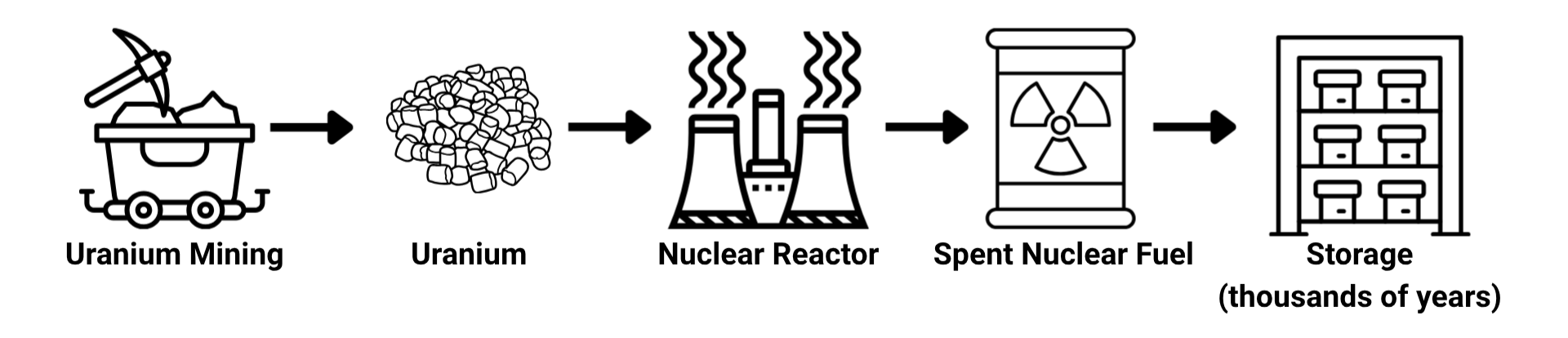 Opinions on recycling SNF are mixed. Advocates argue that this would reduce the amount of nuclear waste that needs to be buried and decrease the need to mine more uranium. They also estimate that recycling the current supply of SNF would provide enough energy to power the US for the next 150 years. Those against SNF recycling, however, argue that this technology could help create more nuclear weapons and that the waste still remains radioactive for many years.