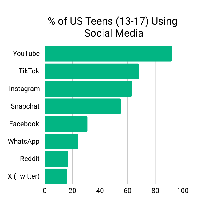 Number of US teenagers that have ever used social media platforms. Adapted from Teens, Social Media and AI Chatbots 2025